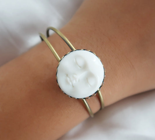Mond Gesicht Armreif Bronze, Verstellbares Armreif, Schlichter Armreif, minimalistischer Armband, Geschenk für sie, Mama Geschenk